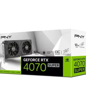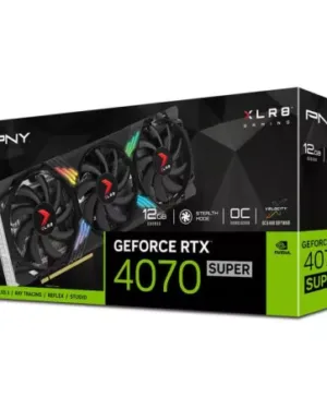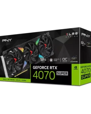 Carte graphique PNY RTX 4070 Super ARGB OC avec éclairage RGB et overclocking.