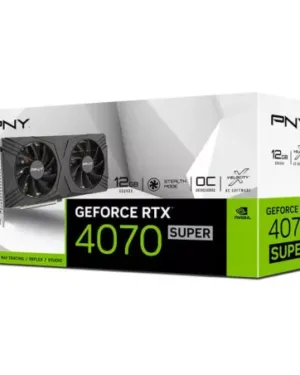 Carte graphique PNY RTX 4070 Super LED OC avec overclocking et éclairage LED.