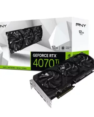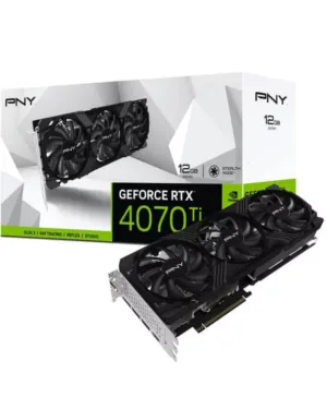 Le PNY GEFORCE RTX 4070 Ti 12GB VERTO Triple Fan Edition est une carte graphique avec la technologie DLSS 3, offrant des performances supérieures et une gestion avancée de la chaleur grâce à ses trois ventilateurs.