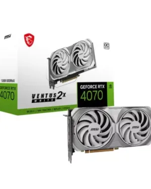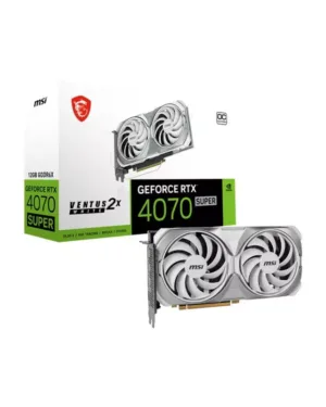 Carte graphique MSI RTX 4070 SUPER 12G VENTUS 2X WHITE OC : performances de haut niveau et design élégant en blanc.
