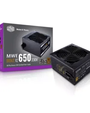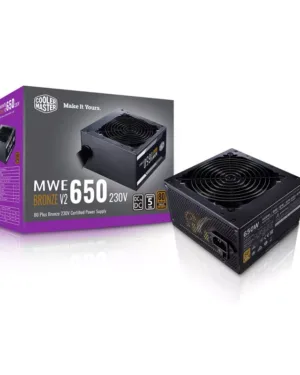‘ALIM COOLER MASTER MWE Bronze 650W V2 – 230V MPE-6501-ACABW-BEU *4392’ est une alimentation de 650W de la marque Cooler Master, modèle MWE Bronze V2. Cette alimentation est compatible avec le voltage 230V. Son numéro de référence est MPE-6501-ACABW-BEU *4392.