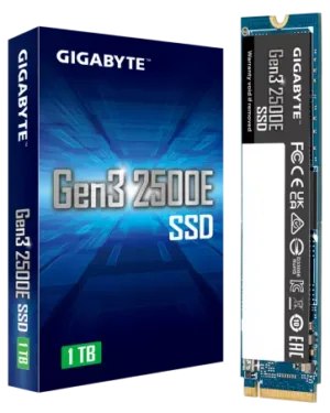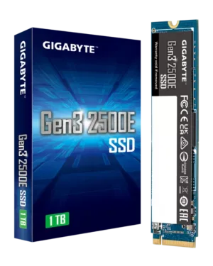 Le SSD GIGABYTE Gen3 2500E offre une capacité de stockage de 1 To dans un format M.2 2280, avec une interface PCIe 3.0.