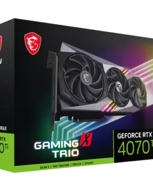 ‘MSI RTX 4070Ti GAMING X TRIO 12G’ offre des performances de jeu exceptionnelles avec une mémoire de 12 Go et un design avancé de refroidissement pour une expérience de jeu optimale.
