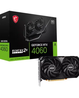 ‘MSI RTX 4060 VENTUS 2X BLACK 8G OC’ est une carte graphique avec une mémoire de 8 Go et une architecture de refroidissement avancée.