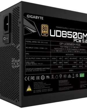 Alimentation GIGABYTE 850W PCIe 5 – UD850GM PG5 V2 certifiée 80+ Gold.