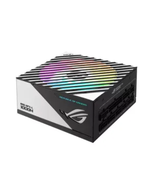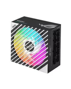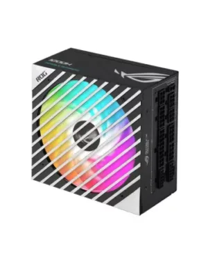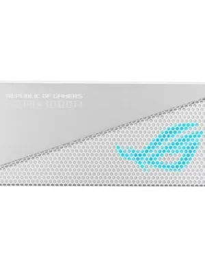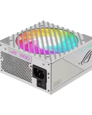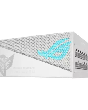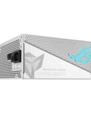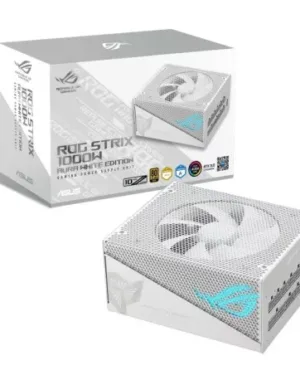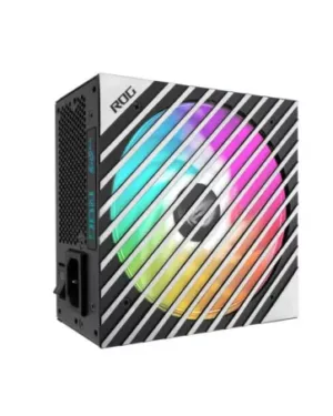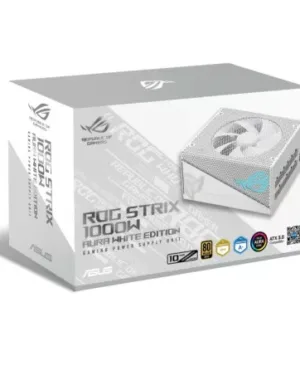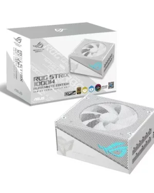 Alimentation ASUS ROG-STRIX-1000G-AURA-WHITE-GAMING de 1000W blanc avec éclairage RGB pour les passionnés de jeux.