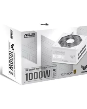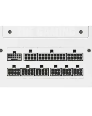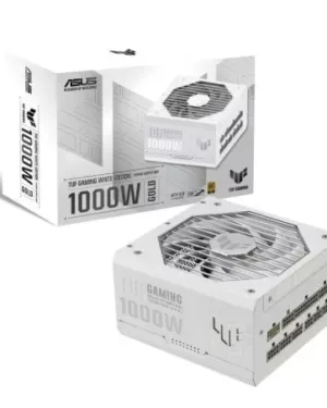 Alimentation TUF GAMING 1000G White, certifiée 80 Plus Gold, compatible avec les cartes mères ATX, efficacité énergétique et fiabilité supérieures.