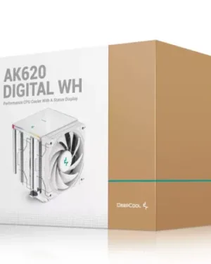 Ventilateur de processeur DEEPCOOL AK620 Digital WHITE avec contrôle digital, optimisé pour un refroidissement efficace.