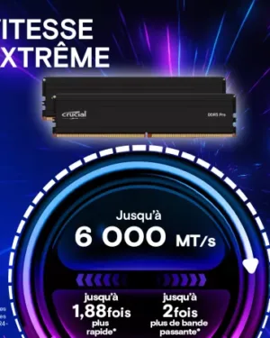 Mémoire vive MEM D5 6000 32G (2x16G) CRUCIAL PRO pour overclocking, référence *CP2K16G60C36U5B*1596.